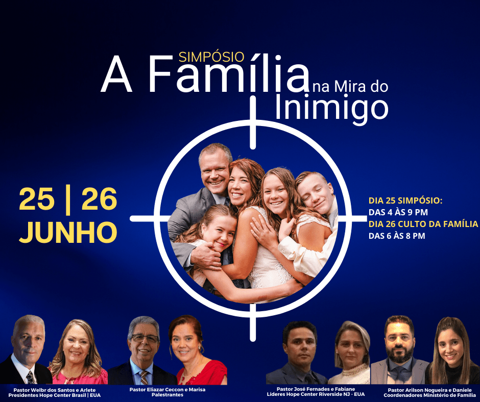 A Igreja Assembleia de Deus Hope Center em Riverside NJ EUA, presidida pelo missionário pastor Welbr dos Santos, realizou nos dias 25 e 26 de junho, o Simpósio A FAMÍLIA NA MIRA DO INIMIGO.